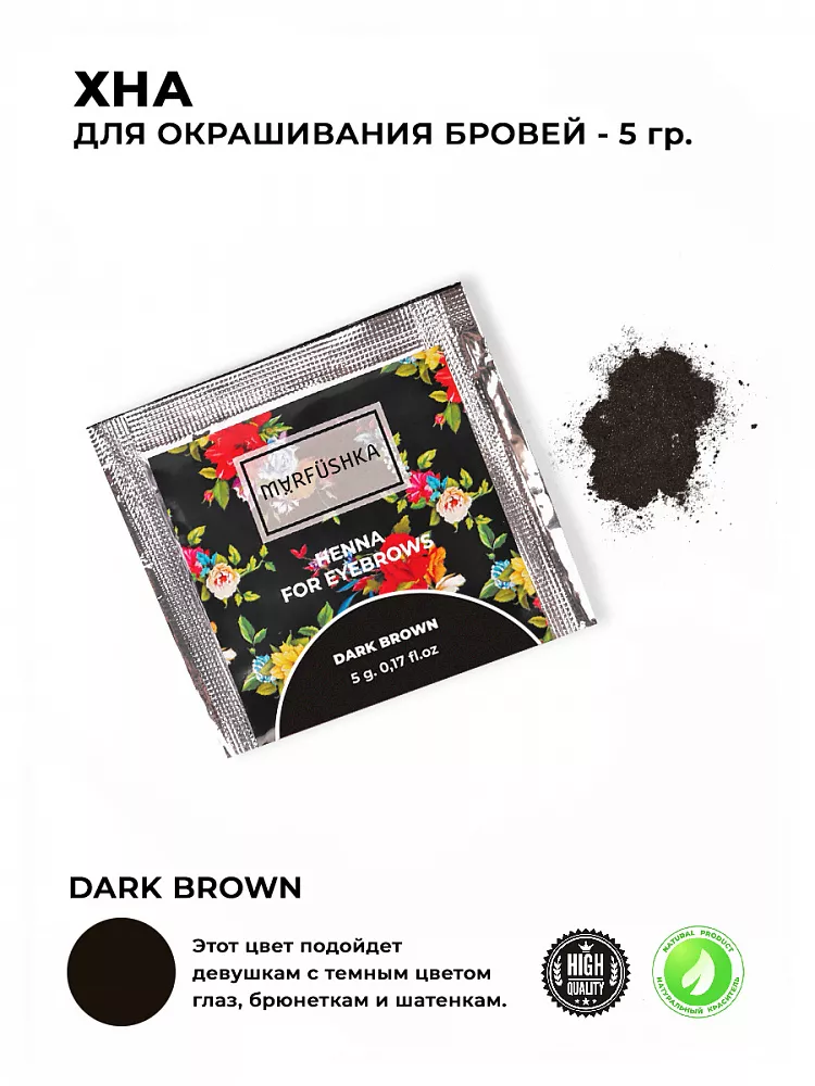 Натуральная хна для бровей «Marfushka». Стойкий эффект окрашивания виден до 6 недель на волосках и до 14 дней на коже. Гарантированный результат — идеальная форма, цвет и насыщенность бровей.