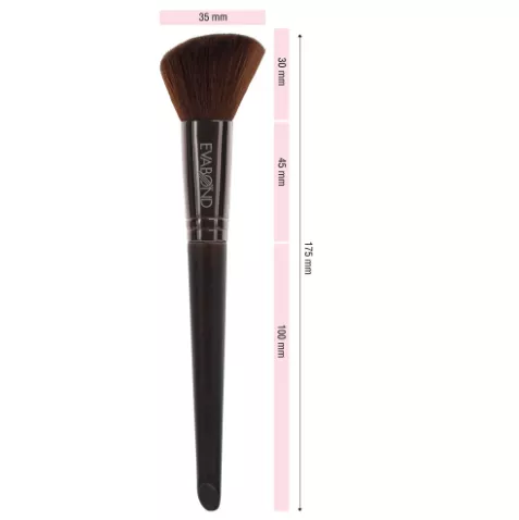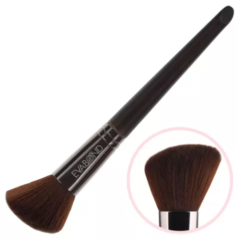 Предназначена для нанесения пудры и румян. Отличительной чертой является крупный размер и скошенная форма кисточки, что позволяет мастеру наносить и сразу растушевывать румяна и пудровые бронзаторы.