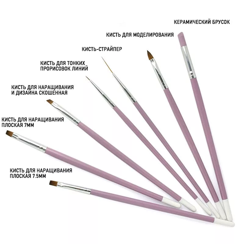 4. Кисть для наращивания и дизайна скошенная. Длина кисти 17.7см. Длина ворса 6.5мм. ширина ворса 4мм.