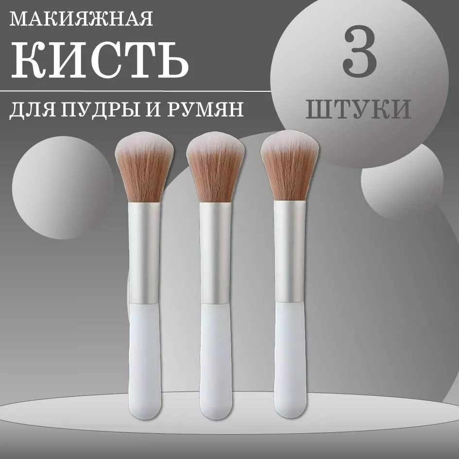 Кисть макияжная для пудры и румян, белая, 3 шт