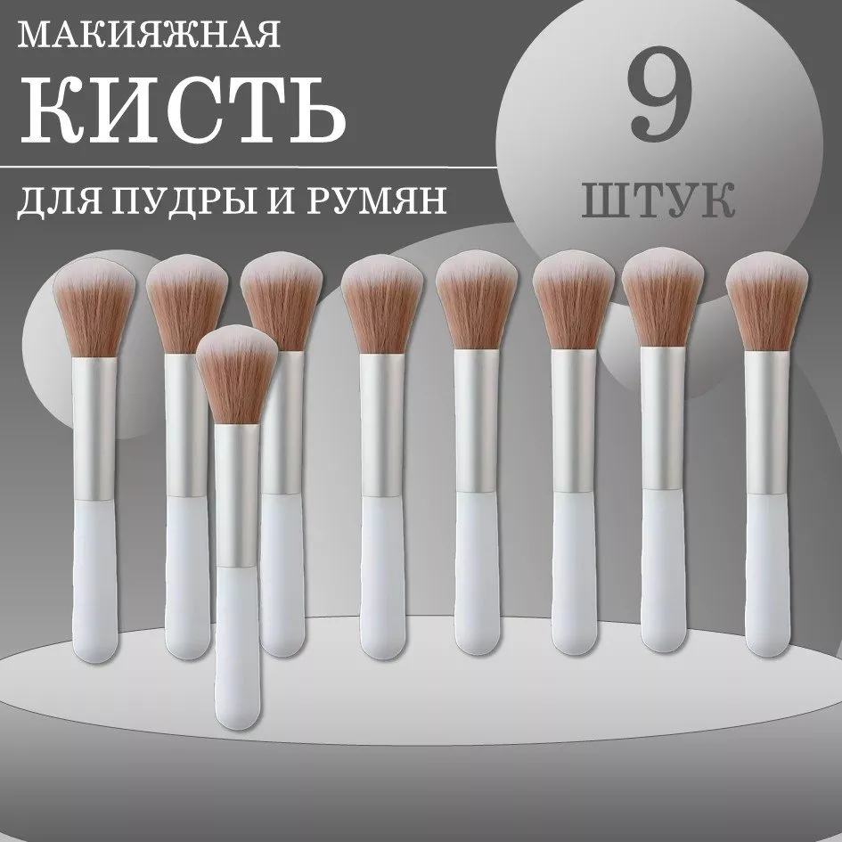 Кисть макияжная для пудры и румян, белая, 9 шт