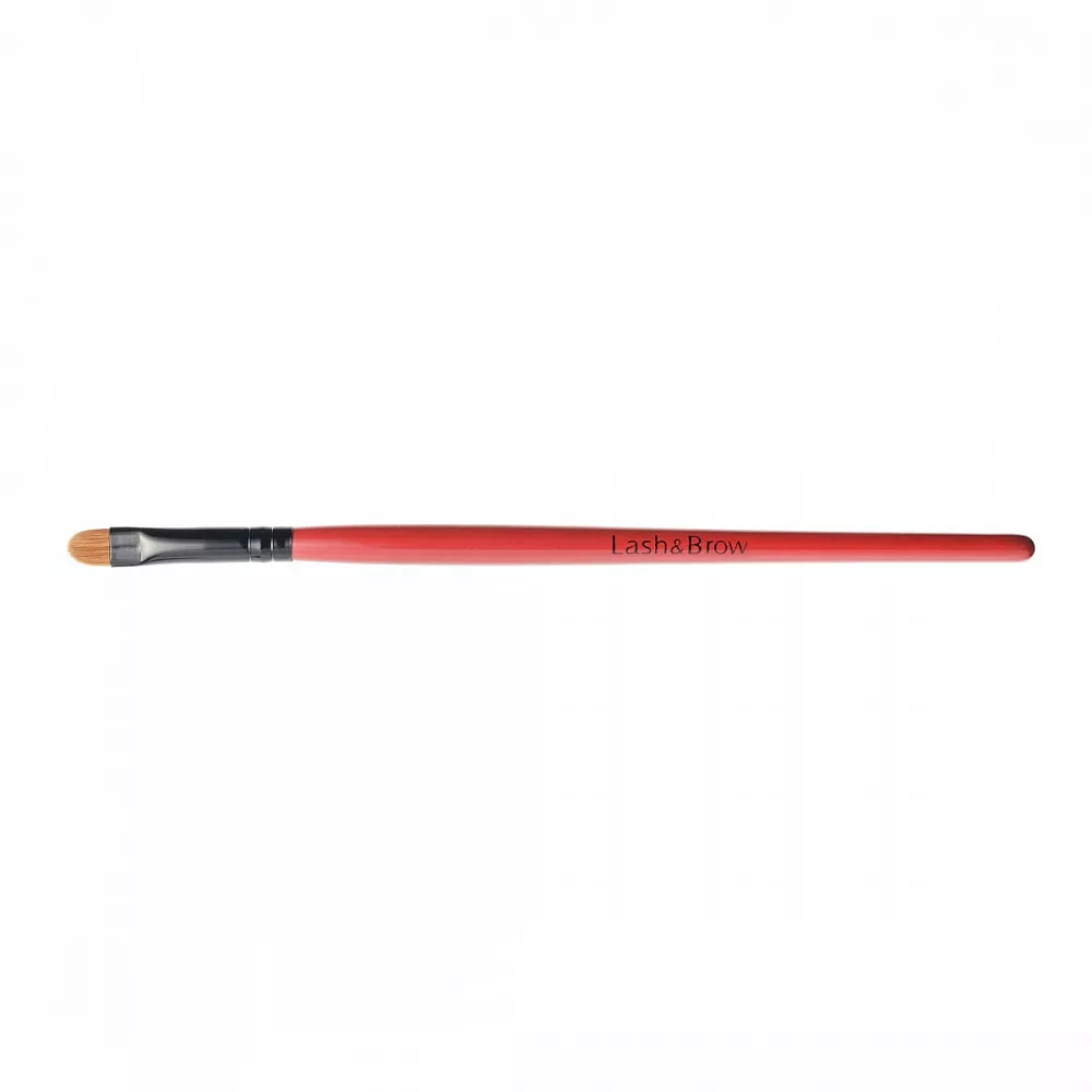 Универсальная скругленная кисть Lash&Brow. Несмотря на то, что широкий скос требует определенной сноровки, эту кисть можно смело рекомендовать начинающим мастерам. Густой натуральный ворс делает кисть идеальным инструментом для работы с хной. Она безупречно прорисовывает форму, не оставляя пробелов на коже.