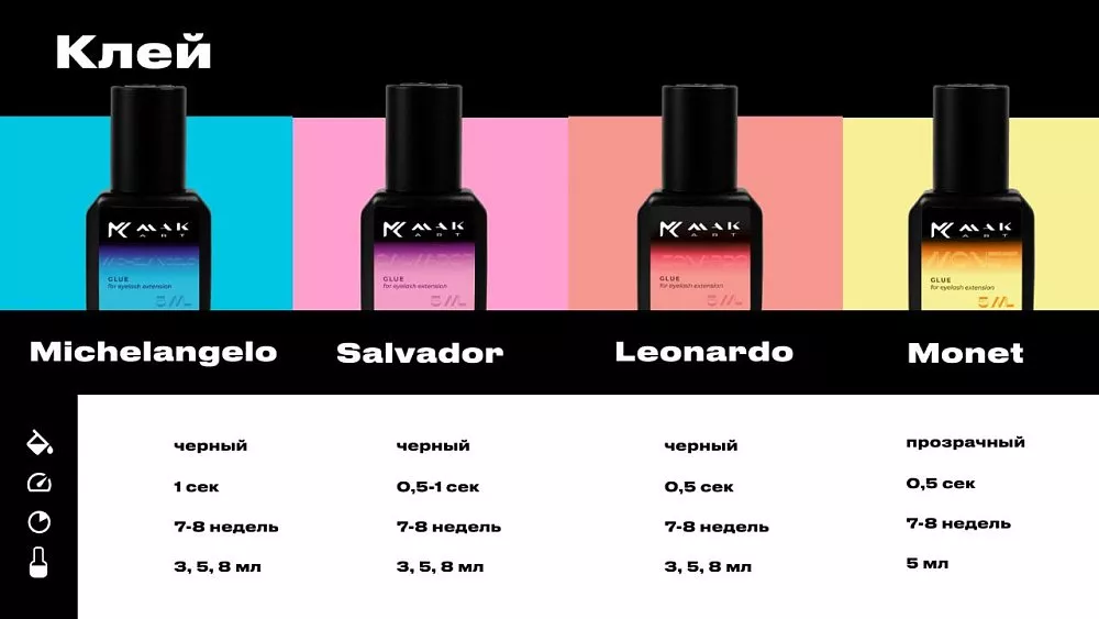 Клей для наращивания ресниц MAKart Michelangelo имеет жидкую консистенцию. Отлично сохраняет эластичность после высыхания, что значительно продлевает срок носки наращенных ресниц. Формула клея минимизирует количество испарений, благодаря чему снижается риск аллергических реакций.