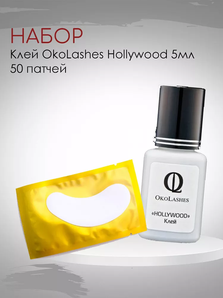 Набор для наращивания ресниц Oko Lashes клей Hollywood 5 мл и 50 патчей.