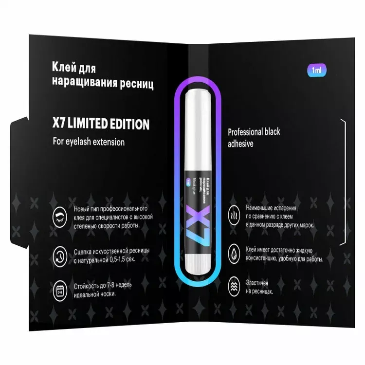 Быстрый, современный черный клей Х7 для профессионального наращивания ресниц помогает мастеру быть эффективным в любой технике наращивания- классической или объёмной.