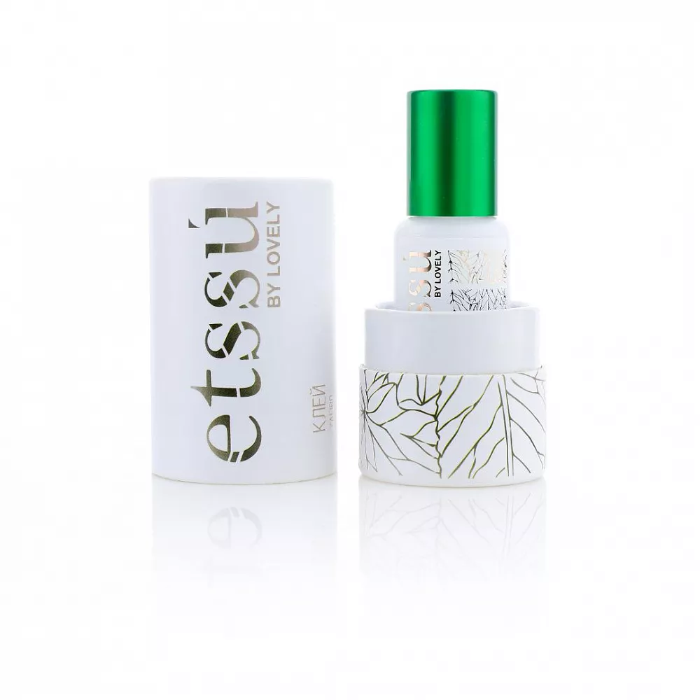 Хорошо взболтайте флакон, выдавите каплю на специальную поверхность (палетку для клея Etssu, нефритовый камень Etssu) и обмакните ресницу в клей.