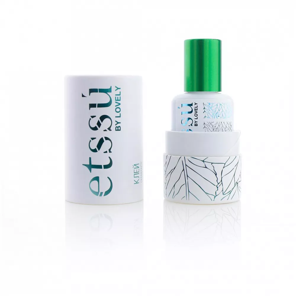 Хорошо взболтайте флакон, выдавите каплю на специальную поверхность (палетку для клея Etssu, нефритовый камень Etssu) и обмакните ресницу в клей.