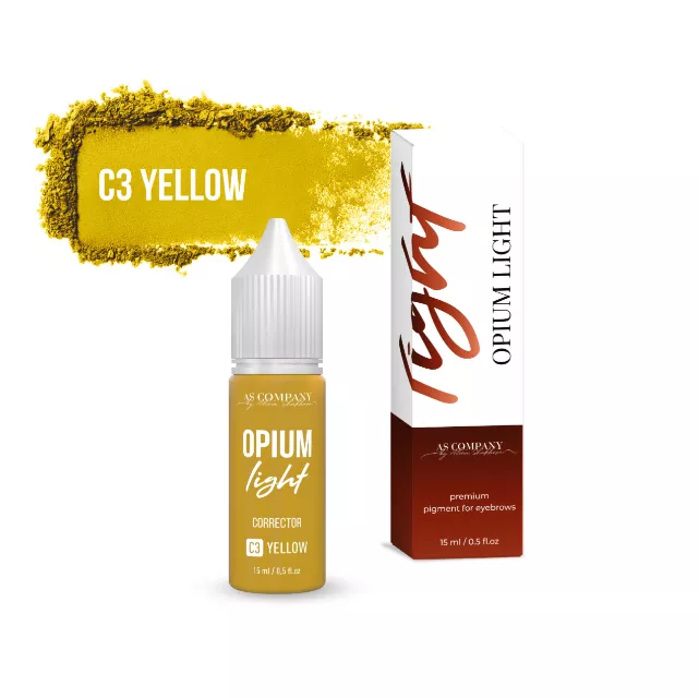 Желтый корректор для цветокоррекции нежелательного оттенка перманентного макияжа имеющего характерно фиолетовый цвет.