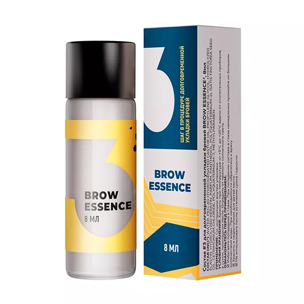 Состав #3 BROW ESSENCE используется на завершающем этапе процедуры долговременной укладки бровей. Удобная гелевая консистенция позволяет фиксировать финальную форму бровей, не склеивая их. Формула состава питает и защищает, активизирует рост волосков. Гидролизированный кератин и эластин проникают в структуру волоска – уплотняют, увлажняют, восстанавливают и защищают их. Комплекс полимеров защищает структуру волоска от повреждений. Масло усьмы восстанавливает поврежденные луковицы и стимулирует рост новых волосков. Дайте составу подсохнуть в течении нескольких минут и идеальный результат укладки бровей обеспечен до 6 недель.
