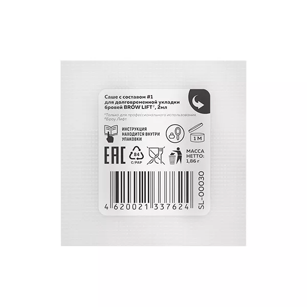 Состав #1 BROW LIFT используется в качестве первого шага в процедуре долговременной укладки бровей. Щадящая формула с гидролизированным протеином обеспечивает глубокое питание стержней волосков, участвует в формировании кератина и помогает фиксировать форму волосков. Ланолиновый спирт обладает увлажняющими и защитными свойствами. Консистенция однородная, кремообразная, удобно наносится и не растекается.