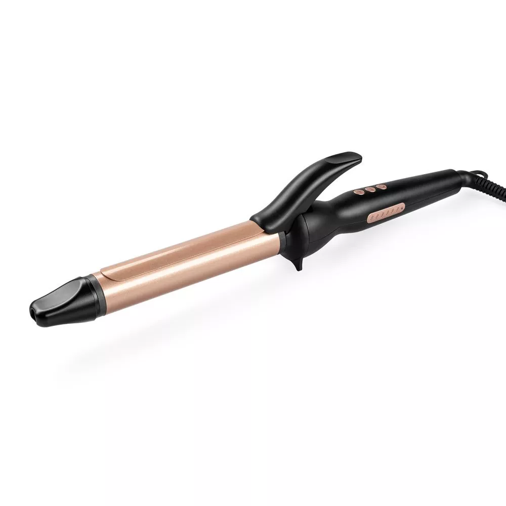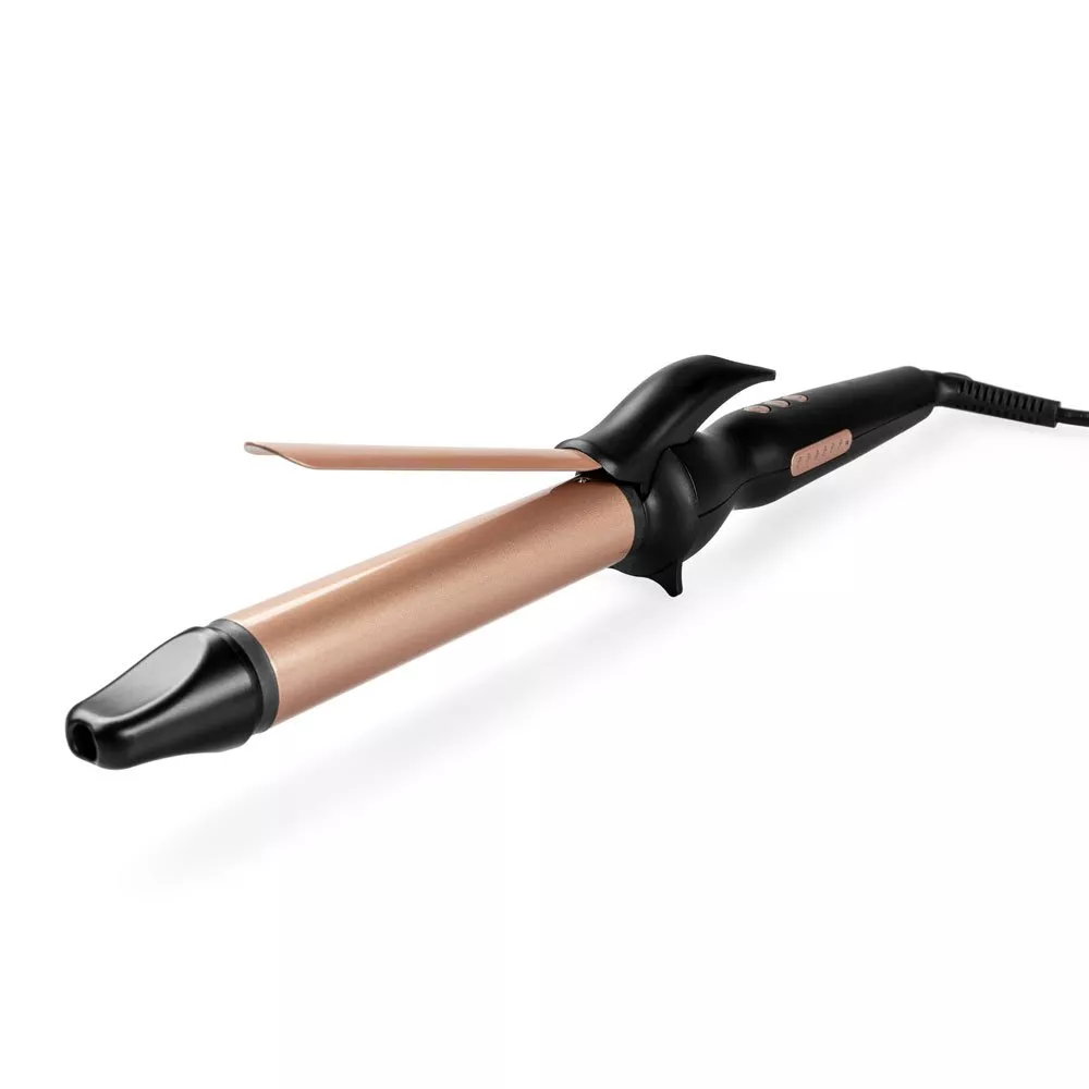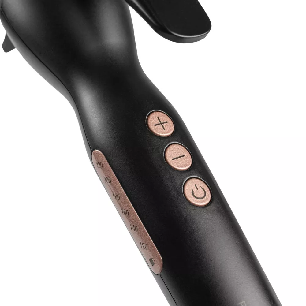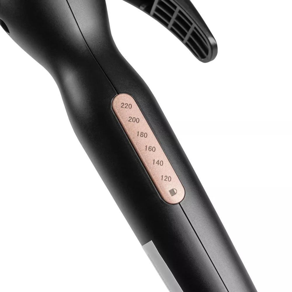 Плойка обладает удлиненной нагревающей поверхностью 125 мм, благодаря чему можно сделать идеальную укладку на длинных волосах. Средний диаметр щипцов для завивки подходит для создания не только мягких волнистых локонов, но и крупных объемных кудрей. Устройство имеет 6 температурных режимов и позволяет подобрать правильную температуру для каждого типа волос. Защитный холодный наконечник удерживает волосы во время завивки и оберегает руки от получения ожогов в процессе работы.