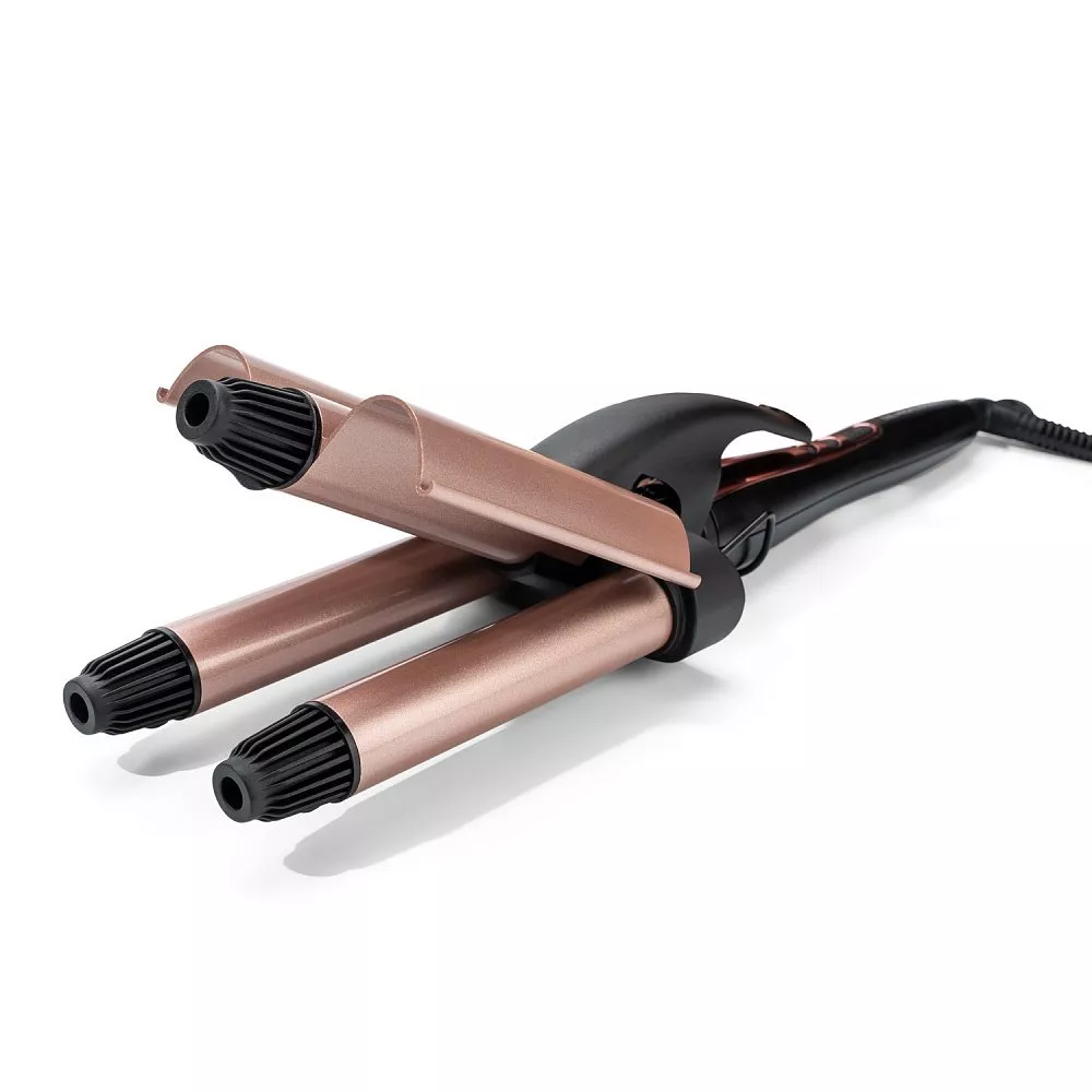 Ультрасовременная плойка с тройной конструкцией для идеальных локонов за короткое время. Подходит для создания легких завитков, пляжных волн и объемных форм. На рабочую поверхность нанесено керамическое покрытие. Плойка быстро нагревается (30 секунд), равномерно распределяет тепло. Волосы защищены от перегрева и ожогов. У прибора масса достоинств: