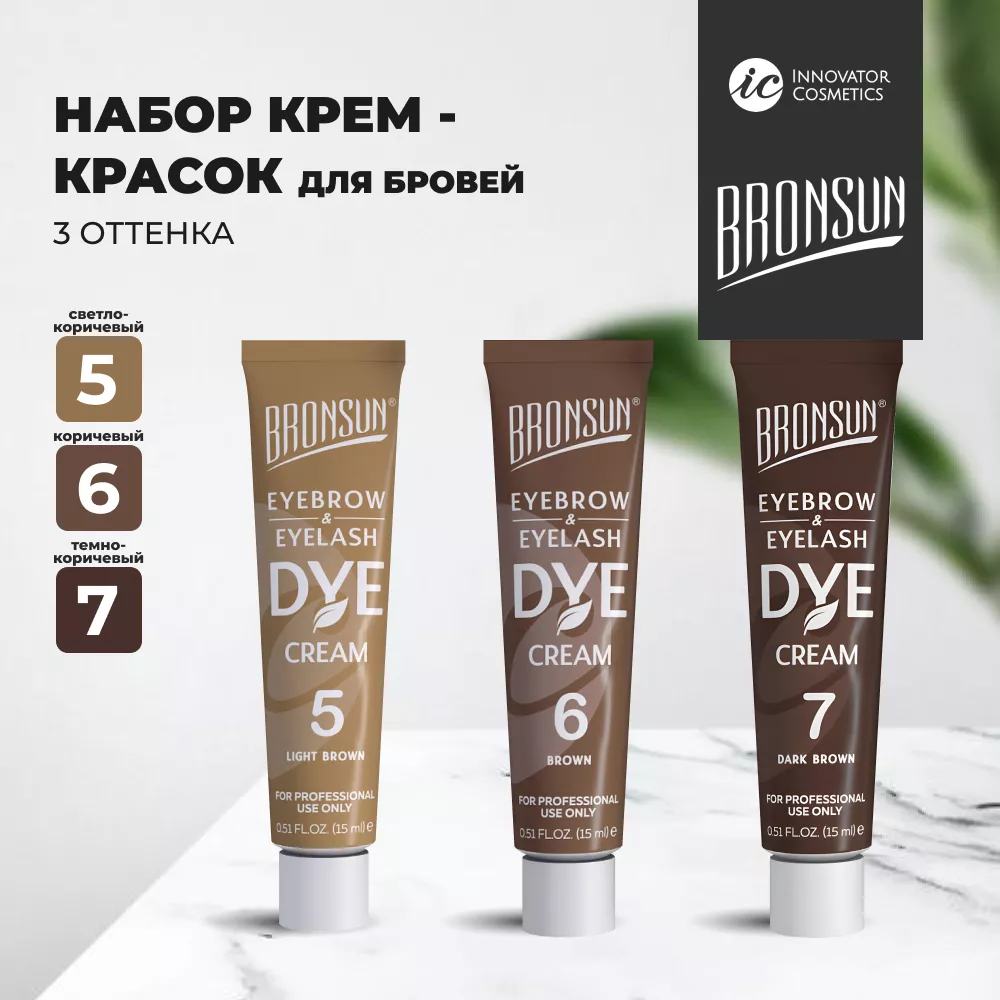 Набор крем-красок для бровей и ресниц Bronsun из 3 оттенков. Новая формула.