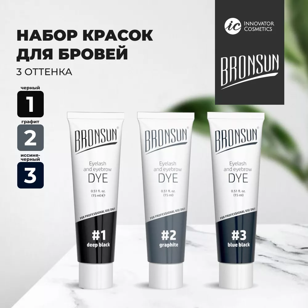 Набор красок для бровей и ресниц Bronsun из 3 оттенков. Новая формула.