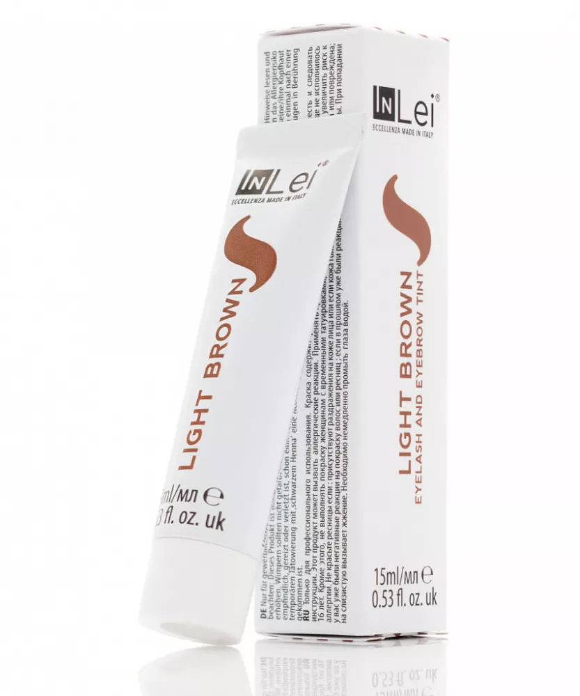 окраску. Краска для ресниц и бровей IN LEI® носится на волосках до 6 недель, и на коже до 6 дней. Используйте краску с собственным окислителем IN LEI® DEVELOPER CREAM 1,5% чтобы получить кремовую и обволакивающую консистенцию. Кроме того, линия красителей IN LEI® специально разработана для использования с процедурой IN LEI® «Lash Filler». Окрашивание придает волоскам сверкающий цвет и играет важную роль в процессе открытия чешуек волосков, во время проведения процедуры ламинирования ресниц.
