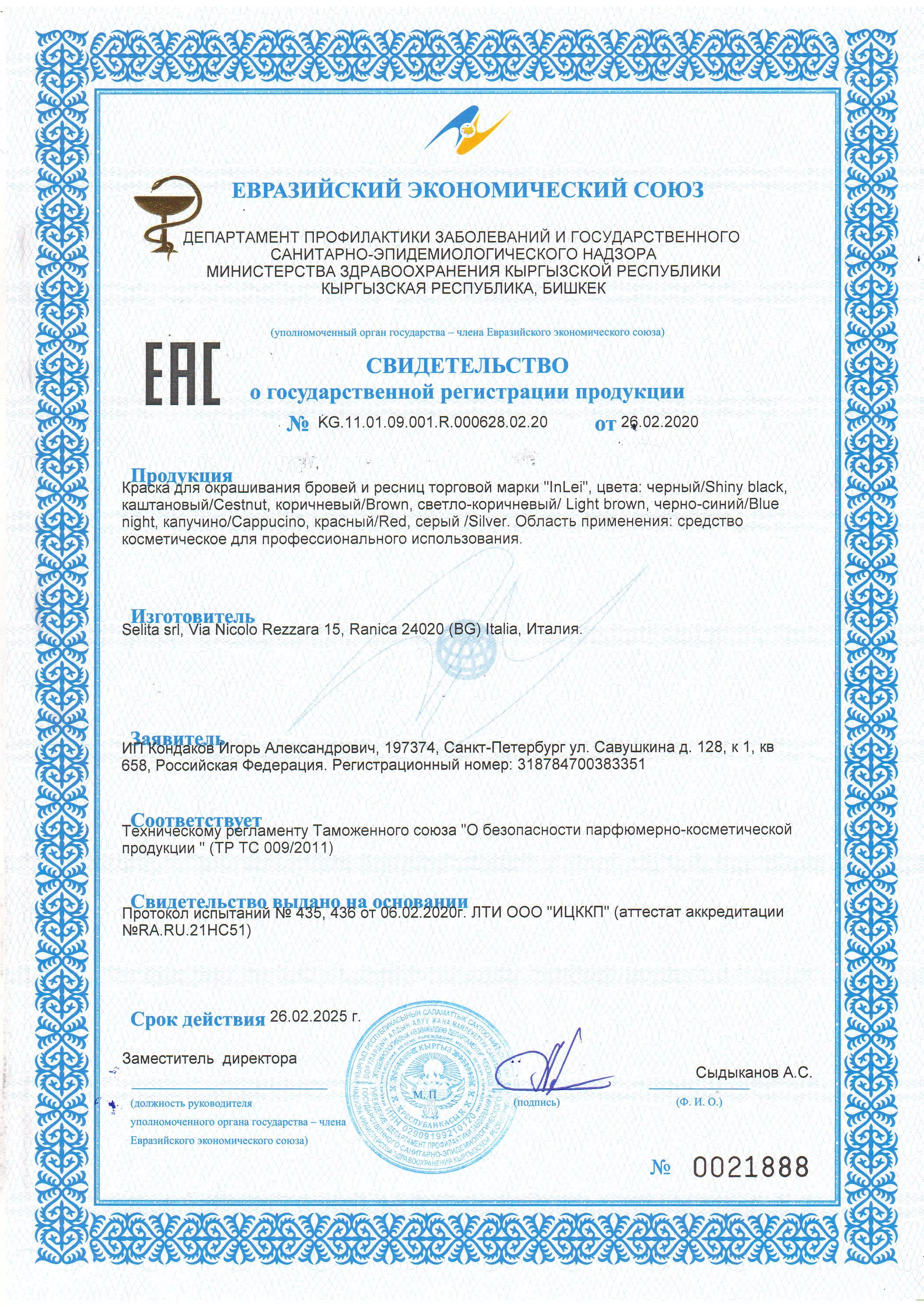 ТЕСТ НА ЧУВСТВИТЕЛЬНОСТЬ: У некоторых лиц продукт может вызвать серьезное воспаление кожи. Поэтому рекомендуется проводить тест на чувствительность за 48 часов до каждого нанесения. Следует снять серьги, если таковые имеются. Тщательно промыть мыльным раствором или спиртом квадратный сантиметр кожи за ухом или в локтевой впадине. Нанести небольшое количество смеси IN LEI® Tintura + IN LEI® «Develo- per Cream 1.5% 5vol.» и дождаться ее высыхания. Через 48 часов тщательно смыть теплой водой. Данный тест является важной мерой предосторожности. Отсутствие явных проявлений не исключает тот факт, что продукт может вызвать аллергическую реакцию в процессе последующих нанесений. В случае возникновения раздражения, зуда или покраснения — немедленно смыть продукт и не использовать его.