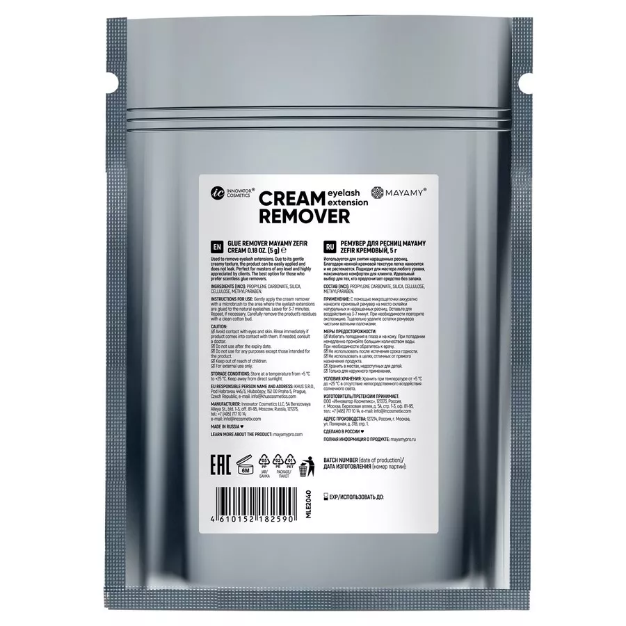 Ремувер Zefir используется для снятия наращенных ресниц. Подходит для мастера любого уровня, максимально комфортен для клиента. Пластичная кремовая текстура препарата позволяет легко нанести и распределить его на ресницах. Ремувер не растекается, бережно обволакивает ресницы и быстро и эффективно растворяет клей в месте сцепки натуральных и искусственных ресниц. Снятие наращивания занимает всего около 5 минут. Ремувер не оставляет следов на ресницах, легко поддается вычищению. Ремувер Zefir отличается небольшим расходом: в 2 раза меньше, чем у обычного средства.