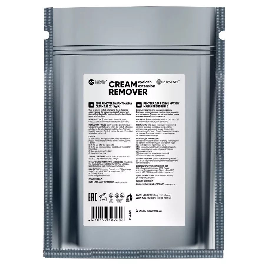 Ремувер подходит для мастера любого уровня, максимально комфортен для клиента. Пластичная кремовая текстура препарата позволяет легко нанести и распределить его на ресницах. Ремувер не растекается, бережно обволакивает ресницы и быстро и эффективно растворяет клей в месте сцепки натуральных и искусственных ресниц. Снятие наращивания занимает всего около 5 минут. Ремувер не оставляет следов на ресницах, легко поддается вычищению. Ремувер Malina отличается небольшим расходом: в 2 раза меньше, чем у обычного средства.