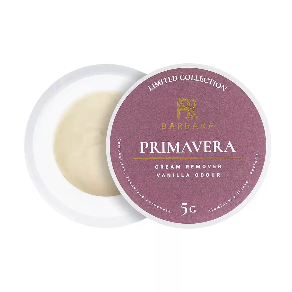 Профессиональный крем-ремувер BARBARA Primavera для снятия наращенных ресниц нейтрального бежевого цвета с ароматом ванили.
