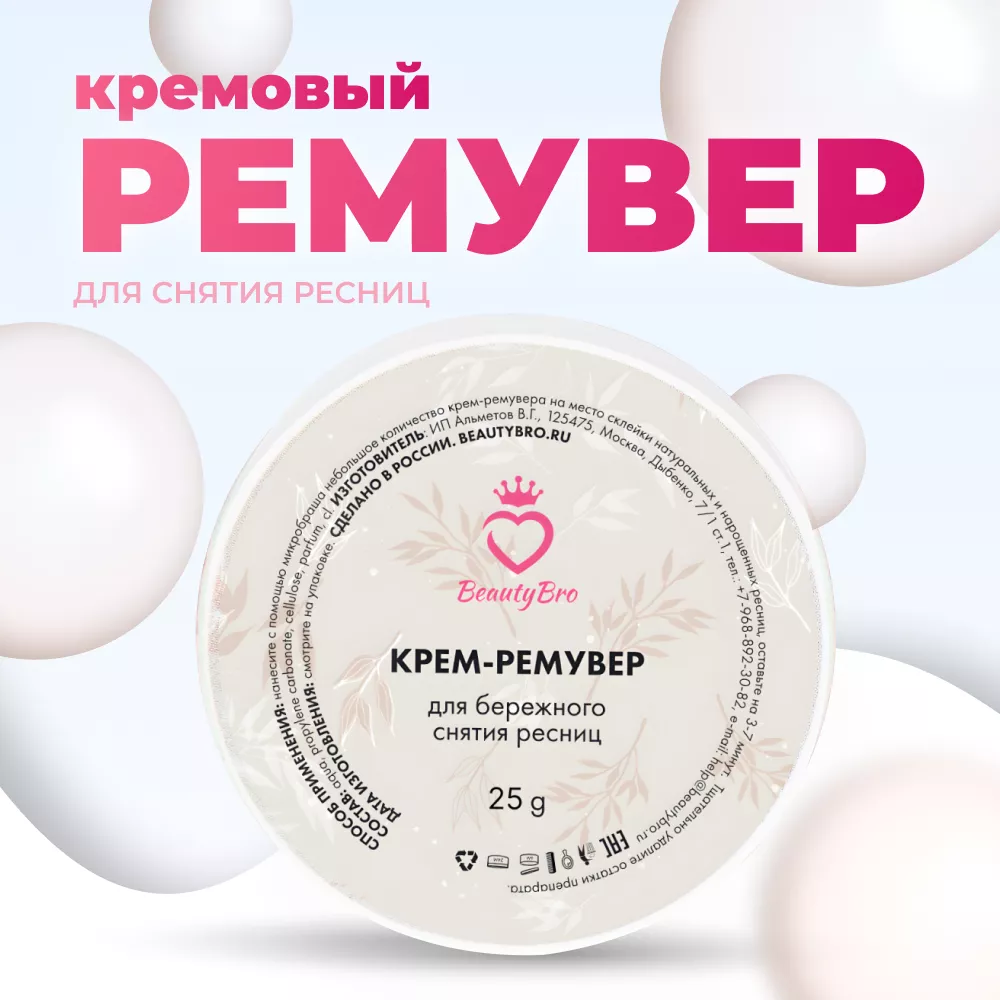Кремовый ремувер Beauty Bro — это популярное средство для легкого снятия наращенных ресниц. Благодаря довольно плотной, но при этом легкой кремообразной консистенции, процедура проходит с максимальным комфортом как для клиентки, так и для лэшмейкера. Причем такой ремувер отлично справится и с отдельным удалением пучков, позволяет быстро скорректировать наращивание.