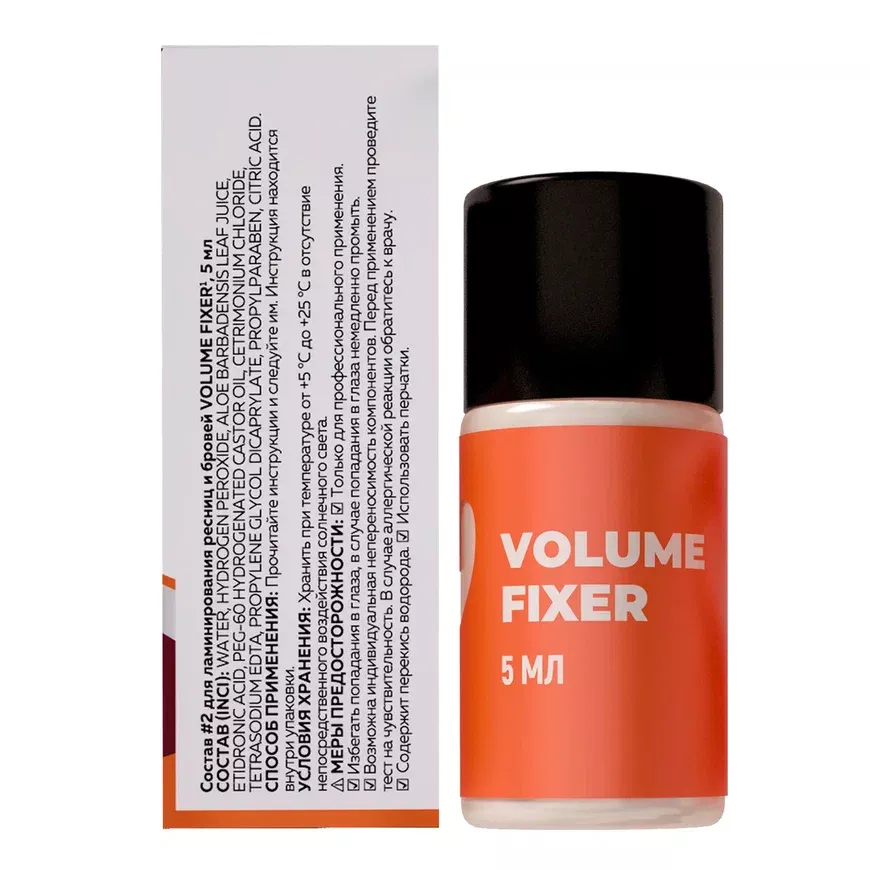 Состав #2 VOLUME FIXER используется на втором этапе формирования изгиба ресниц, имеет кислую среду. После нанесения состава происходит процесс восстановления дисульфидных связей ресниц. При этом протекает реакция окисления. Образуются новые дисульфидные связи с новой формой волоса. Ресницы приобретают изгиб.