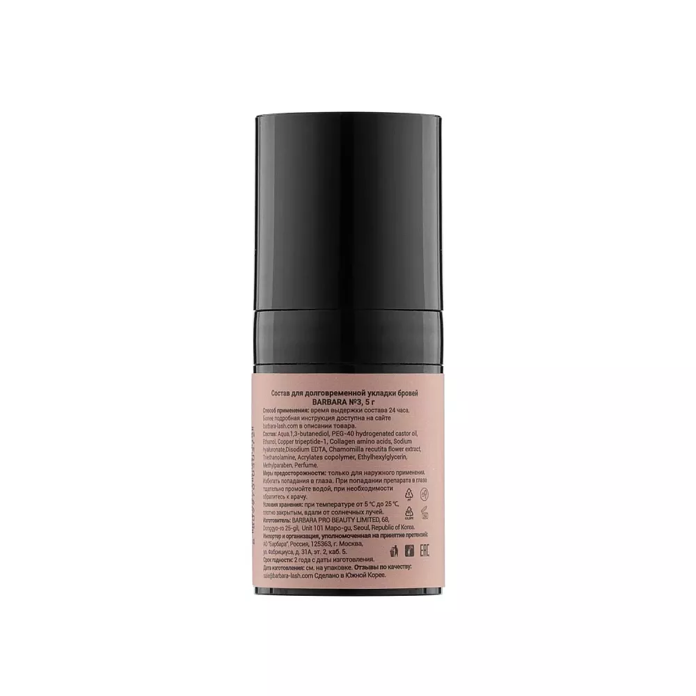Состав №3 для долговременной укладки бровей используется для глубокого увлажнения волосков. Волоски бровей приобретают красивый естественный блеск. Благодаря удобной баночке с помпой состав легко использовать. Герметичная упаковка продлевает срок годности состава и исключает воздействие внешних факторов на свойства продукции.