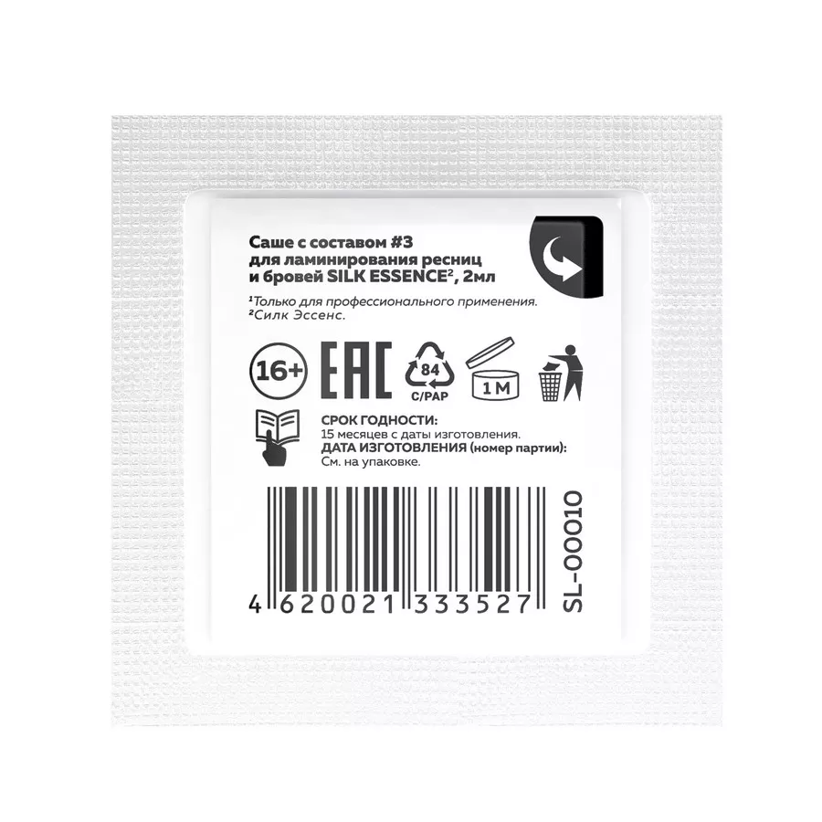 После очищения волосков от Состава №2 Volume Fixer и окрашивания, нанести Cостав №3 Silk Essence и дать подсохнуть 2-3 минуты. Состав не смывается и не убирается. Средство нужно использовать в комплексе с Составами №1 Volume Lift и №2 Volume Fixer.