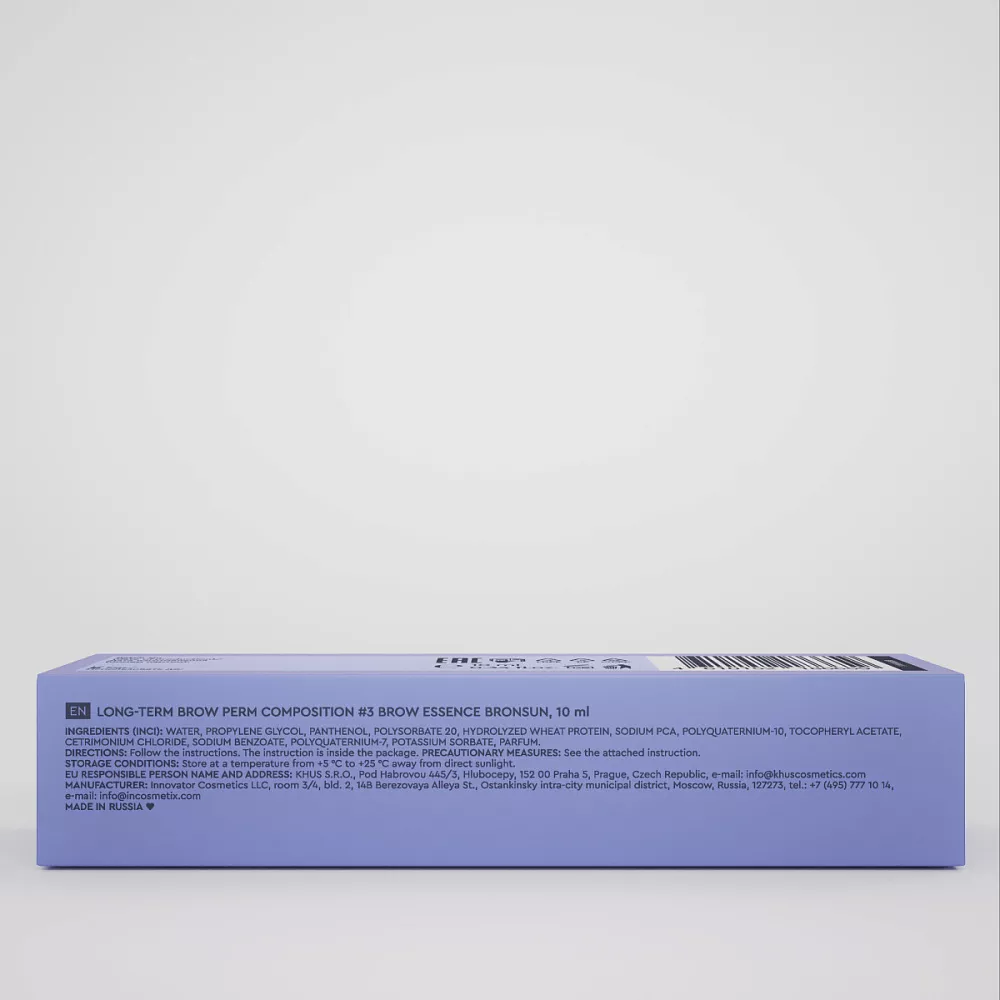 Состав #3 для долговременной укладки BROW ESSENCE BRONSUN используется на завершающем этапе процедуры долговременной укладки. Удобная гелевая консистенция позволяет зафиксировать финальную форму бровей, не склеивая волоски.