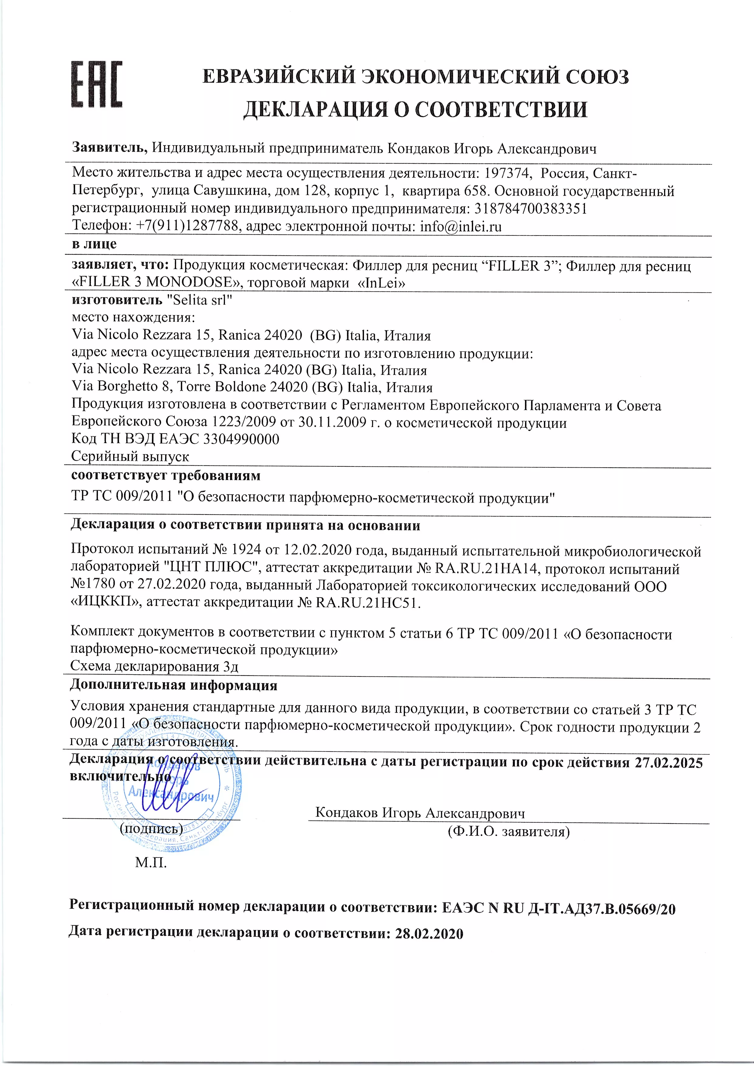 Филлер 3 от In Lei - третий состав для ламинирования ресниц и бровей используется на завершающем этапе процедуры. Он является самым важным компонентом, ведь благодаря этому нереальному комплексу витаминов и питательных веществ волоски значительно укрепляются и эффективно уплотняются на 24 % уже после 3 процедуры.
