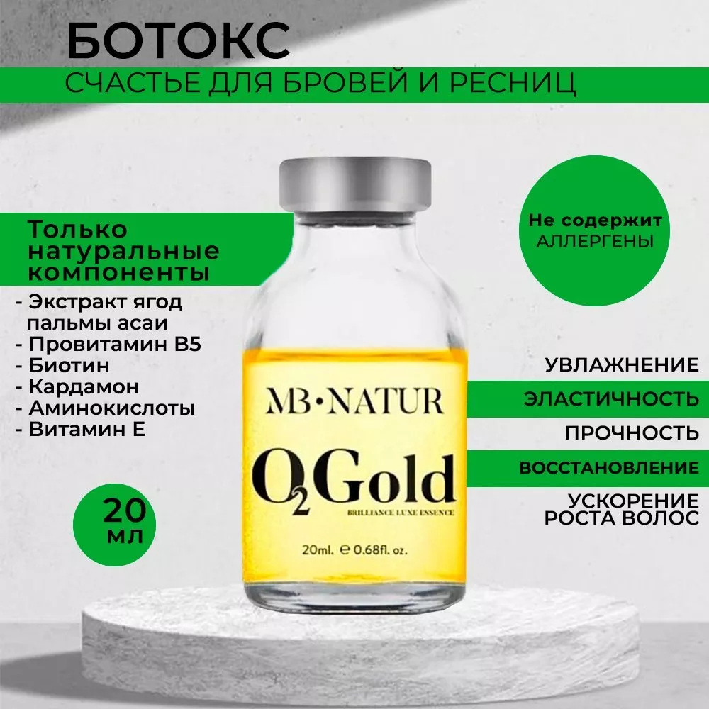 Золотой концентрат O2GOLD – революционный состав Премиум класса, основан на золотых пигментах и экстракте кардамона, обогащен максимально возможным количеством кислорода. Эффективно регенерирует и уплотняет структуру волоса на бровях и ресницах, приводит к полному обновлению, возрождению клеток, полностью снимает стресс после любой салонной процедуры, максимально восстанавливает кровообращение волосяных луковиц, очищает кожу от акне, дерматита, раздражения.