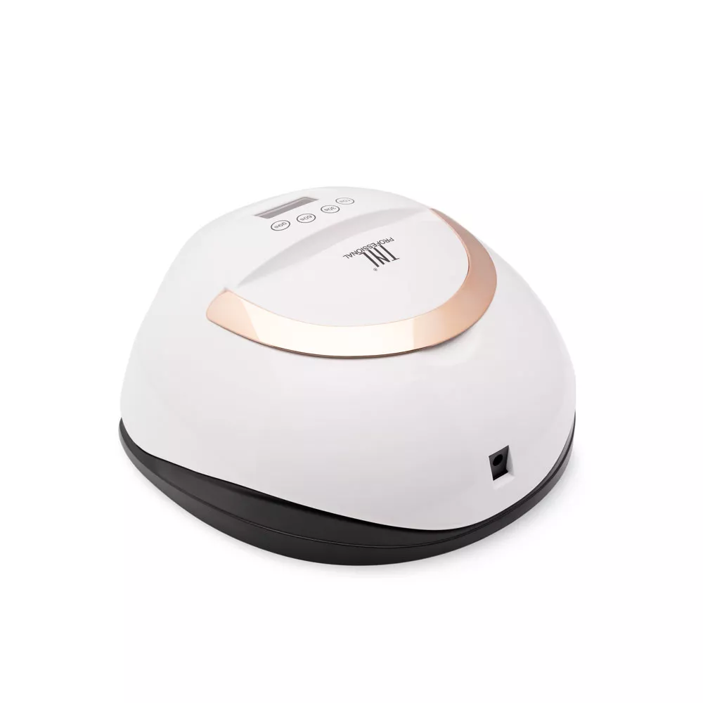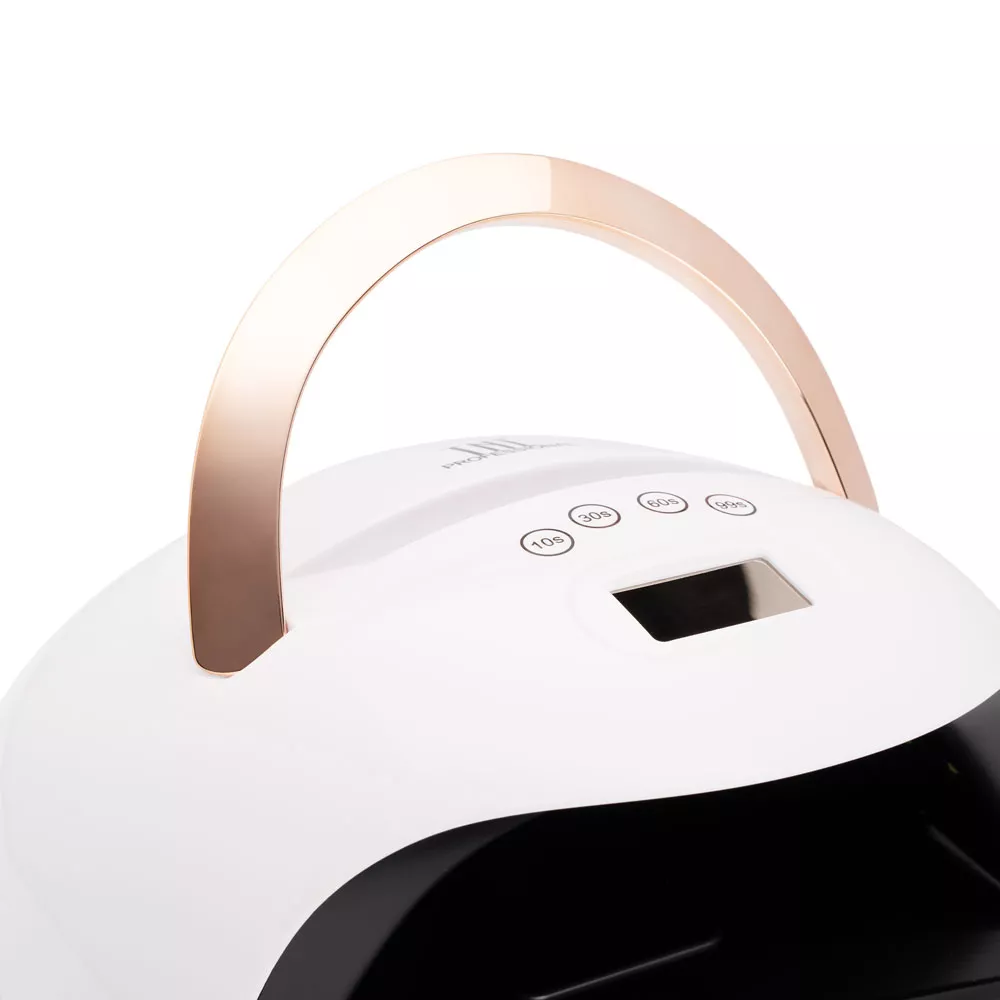Усиленная мощность 168 W высушивает покрытие быстрее в сравнении с другими лампами. Оборудование оснащено сенсорным датчиком движения, благодаря которому лампа включается автоматически. Обладает встроенной функцией таймера: 10/30/60 секунд. Конструкция из прочного пластика выполнена так, что верхняя панель выступает над нижней, защищая глаза клиента от источника света. Подставка для телефона надежно крепит смартфон на лампе, позволяя клиенту смотреть фильм во время маникюра.