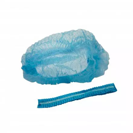 Шапочка применяется для защиты волос от косметических средств и обеспечения удобства работы мастера. Изготавливается из спанбонда, имеет две резинки.