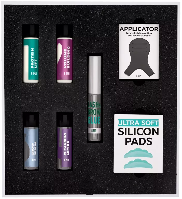 - Water, Cysteamine HCl, Cetyl Alcohol, Myristyl Alcohol, Alpha-Glucan, Stearyl Alcohol, Glycine Soja Sterols, Glyceryl Stearate, Lanolin, Steareth-20, Caprylic/Capric Triglyceride, Propylene Glycol, Ceramide 2, Arginine, Hydrolyzed Keratin, Pentasodium Pentetate, Ammonium Hydroxide, Tocopherol, Polyquaternium-37, Amodimethicone, Cetrimonium Chloride, Parfum, Phenoxyethanol; Лосьон для реконструкции ресниц и бровей VOLUME BUILDING, 8 мл - Water, Sodium Bromate, Cetearyl Alcohol, Glycerin, Hydrolyzed Keratin, Propylene Glycol, Ceramide NG, Butyrospermum Parkii Oil, Macadamia Ternifolia Seed Oil, Simmondsia Chinensis Seed Oil, Alpha-Glucan, Rosa Canina Fruit Oil, Vitis Vinifera Seed Oil, Oleth-4, Polyquaternium-37, Ceteth-10, Cocamidopropyl Betaine, Tocopherol, Dimethiconol, Sodium Hydroxide, Pentasodium Pentetate, Oleic Acid, Sorbitan Oleate, Cetrimonium Chloride, Phosphoric Acid, Phenoxyethanol; Сыворотка для реконструкции ресниц и бровей GROW SERUM