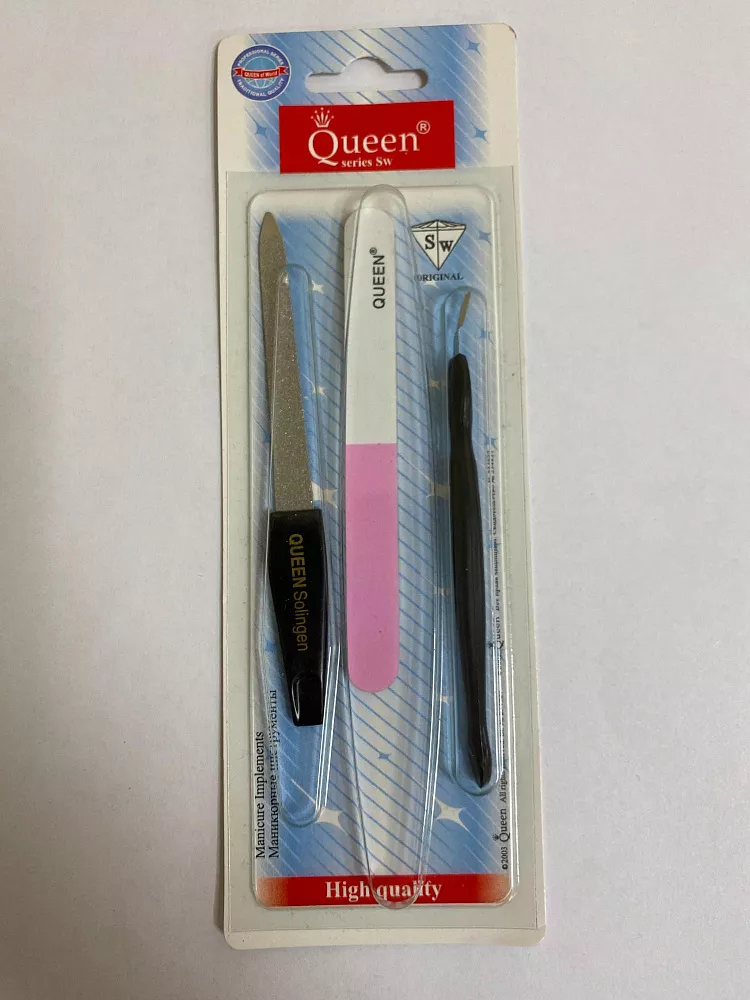 Набор Zinger SIS-4 Состоит из 3 предметов: • пилка металлическая, длина пилки 13 см, длина лезвия 7,5 см • полировка трехсторонняя 800/1200/3000 грит • триммер,V-образная палочка для обрезания кутикулы. Упаковывается в прозрачную пластиковую упаковку на блистере. Упаковка может использоваться в качестве футляра для хранения инструмента.