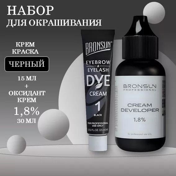 - Крем-краска для ресниц и бровей BRONSUN (Бронсан), цвет черный #1, 15мл Новая формула.