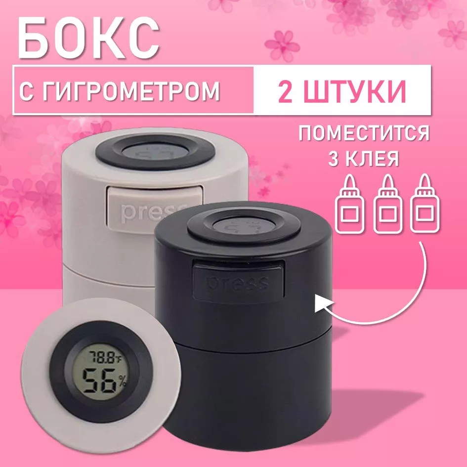 Бокс для хранения трёх клеёв с гигрометром — практичное решение для профессиональных мастеров, позволяющее грамотно организовать рабочее пространство и обеспечить оптимальные условия хранения клеевых составов. Внутри бокса предусмотрено три отдельных отсека для флаконов: такая конструкция надёжно защищает клей от внешних воздействий и помогает сохранить его рабочие свойства. Встроенный гигрометр даёт возможность в режиме реального времени отслеживать уровень влажности, а силикагелевый наполнитель эффективно поглощает избыточную влагу, существенно продлевая срок службы клеевых материалов. Герметичная крышка обеспечивает оптимальный микроклимат внутри бокса, а удобная кнопка press значительно облегчает его открывание. Отсек для батарейки расположен с обратной стороны крышки — для работы гигрометра подойдёт батарейка типа AG13 или её аналоги. Бокс выполнен из качественного материала, отличается лаконичным дизайном и компактными размерами, что позволяет легко разместить его на рабочем столе. Это надёжный помощник в поддержании порядка и сохранности клеевых составов в профессиональной среде.