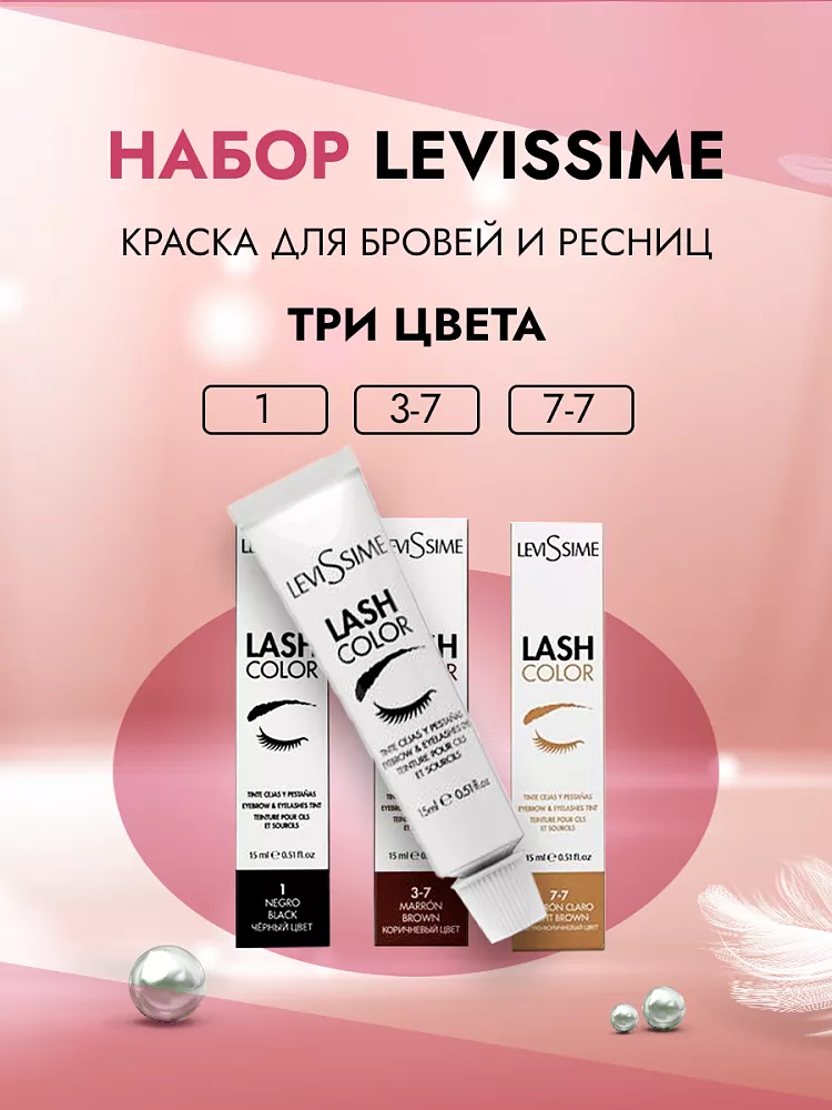 Levissime lash color — это краска, заслужившая популярность не только у бровистов и лэшмейкеров, но и у их клиенток. Средство от испанского бренда выполнено на базе натуральных компонентов, обладает гипоаллергенным свойством, отличается минимальным временем выдержки, гарантирует насыщенный цвет бровей и ресниц, который будет держаться на волосках не менее 7 недель.