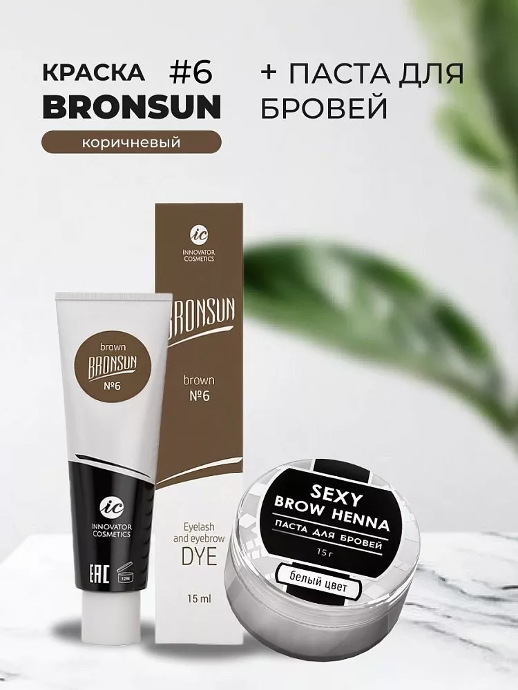 - Краска для ресниц и бровей BRONSUN (Бронсан) цвет коричневый #6 15мл. Новая формула.