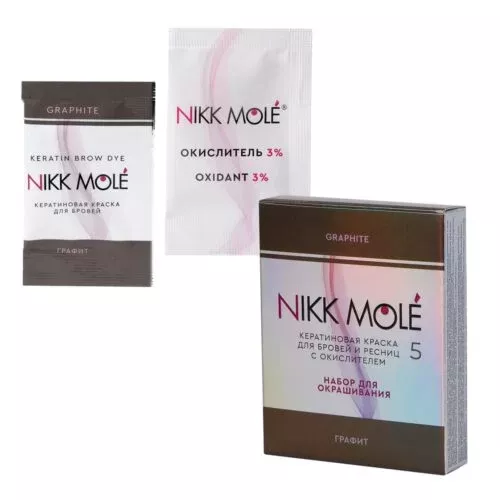 Краска NIKK MOLE формирует натуральный отпечаток цвета на коже при окрашивании бровей и не затемняет волосок после процедуры ламинирования. Опираясь на эти преимущества, мастер может создать новую, более широкую и гармоничную форму бровей клиенту с редкими, тонкими или перещипанными волосками.