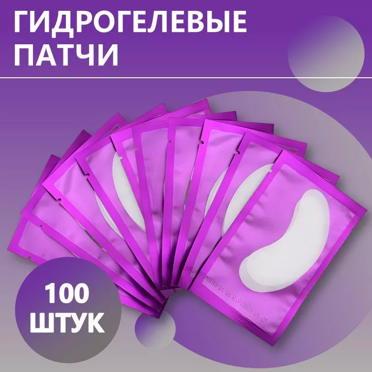 Гидрогелевые патчи для наращивания ресниц (фиолетовые), 100 штук — это специальные накладки, которые используются в процессе наращивания ресниц. Они защищают кожу вокруг глаз от попадания клея и других косметических средств, а также помогают изолировать нижние ресницы во время процедуры.