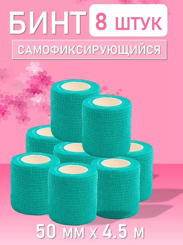 Эластичный бандажный бинт для тату, 50мм х 4,5м, бирюзовый