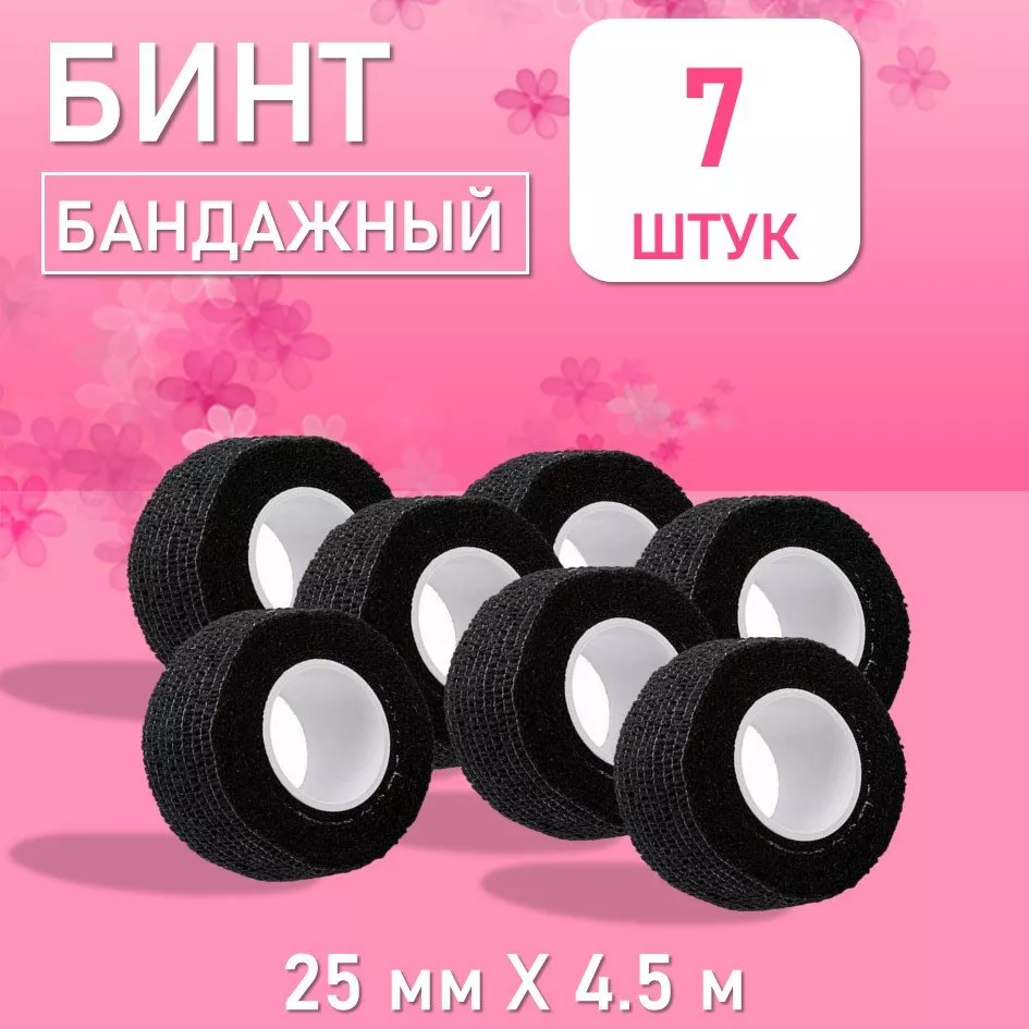 Бинт эластичный бандажный, для тату 25мм х 4,5 мм черный, 7 шт