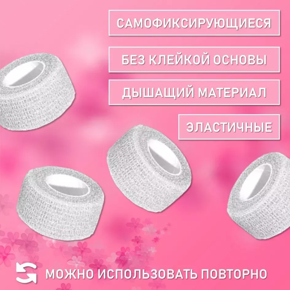 Набор Бинт эластичный бандажный, для тату 50мм х 4,5м розовое сердце 5 шт