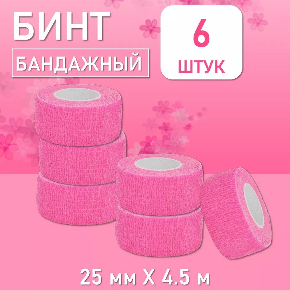 Бинт эластичный бандажный, для тату 25мм х 4,5 м розовый, 6 шт