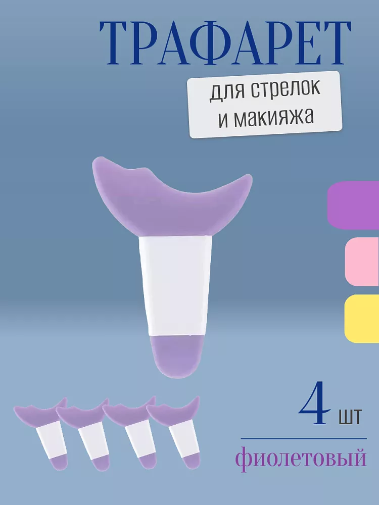 Трафарет для стрелок и макияжа фиолетовый с ручкой 4 шт