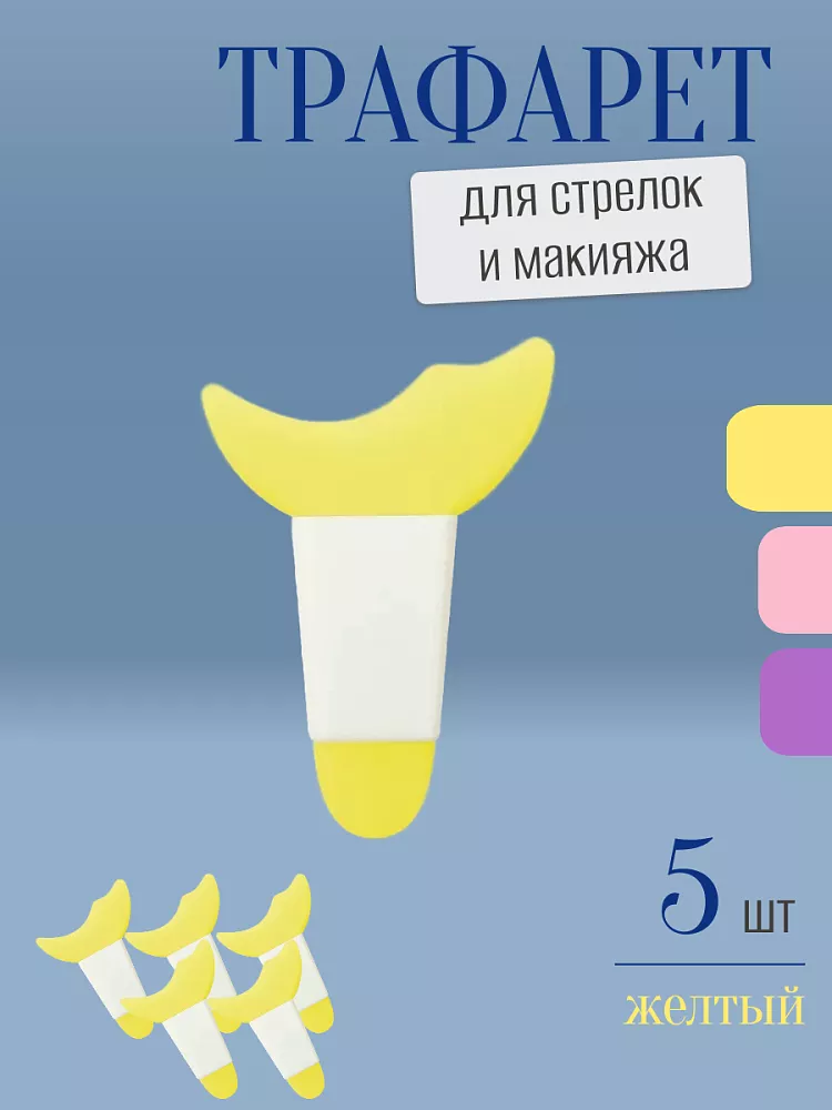Трафарет для стрелок и макияжа желтый с ручкой 5 шт