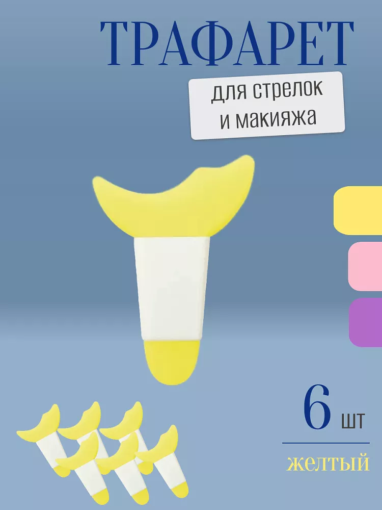 Трафарет для стрелок и макияжа желтый с ручкой 6 шт