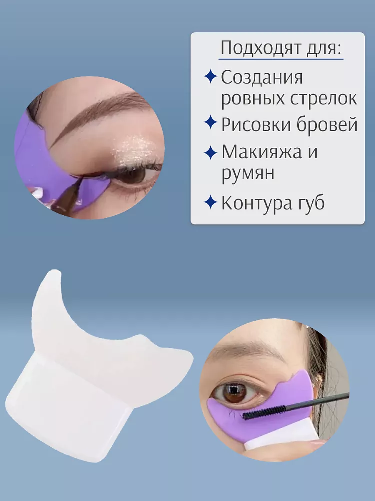 В комплекте идёт удобная щёточка для нанесения косметики, что делает процесс макияжа ещё более комфортным. Трафарет изготовлен из качественного, гибкого полимера, который плотно прилегает к коже и не скользит. Он легко моется, не деформируется при использовании и подходит для многократного применения.