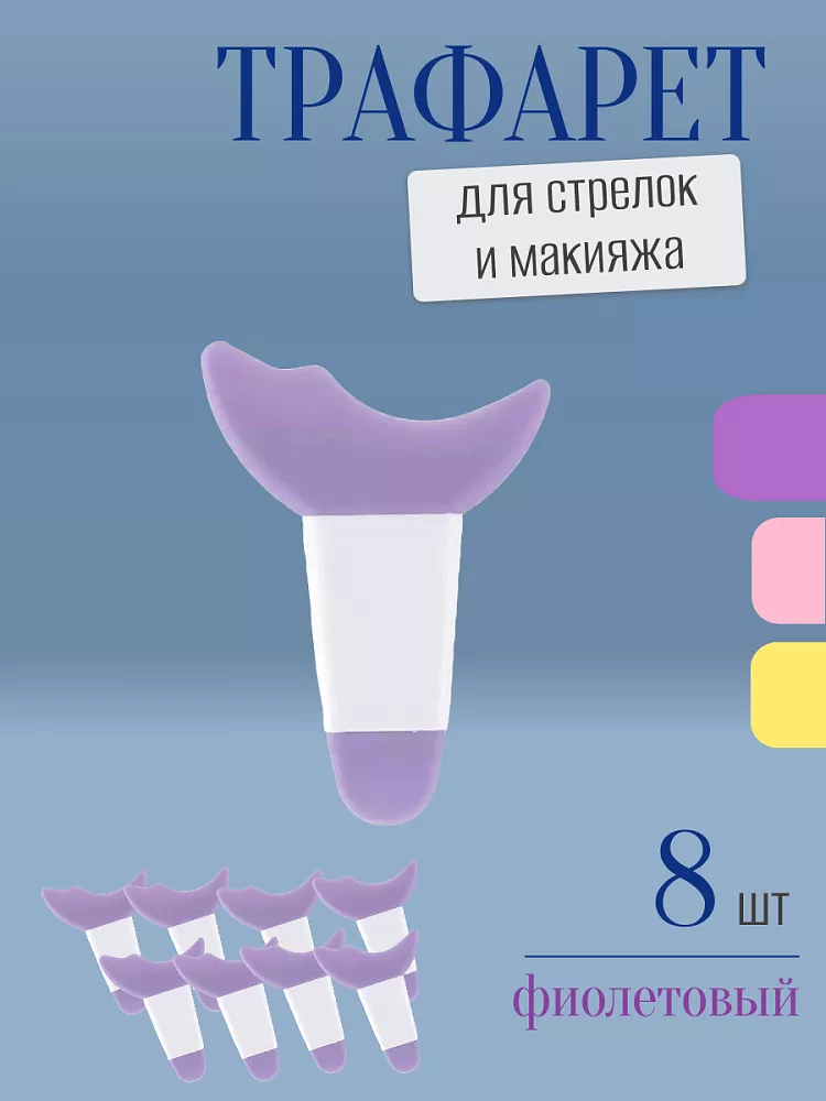 Трафарет для стрелок и макияжа фиолетовый с ручкой 8 шт