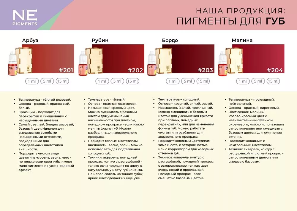 Монодоза пигмента для губ NE Pigments «Рубин» №202 идеально подходит к естественному оттенку губ. При нанесении можно использовать разные техники: помадный прокрас, акварель, растушевку. Не очень удачно смотрится на тонких губах.